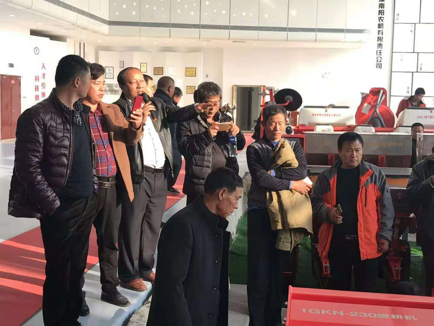 亞澳公司總經(jīng)理助理郭靖和銷(xiāo)售部經(jīng)理王紅衛負責接待,一行70多人來(lái)到大廳,首先郭總給大家介紹了亞澳農機的企業(yè)文化及發(fā)展歷程,并介紹了展廳里所展示的代表性機具。