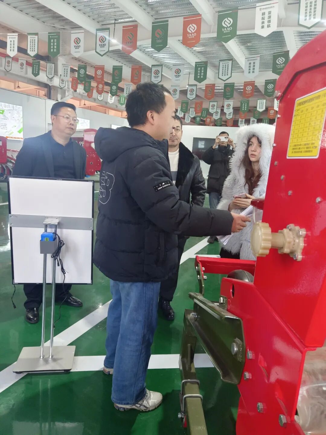 在產(chǎn)品展廳,亞澳農(nóng)機負責外貿(mào)的時馳經(jīng)理詳細介紹了公司的核心技術與產(chǎn)品優(yōu)勢。針對代表團關注的氣吸式播種機,重點演示了其核心優(yōu)勢:搭載進口指夾式排種器,播種精度高達95%以上,遠超國家標準;創(chuàng)新采用梯堵裝置等專利技術,可實現(xiàn)旋耕、整地、播種、施肥一體化作業(yè),適配干旱與黏濕等多種土壤環(huán)境,且能根據(jù)需求定制雙苗帶機型,完全契合烏茲別克斯坦的棉花種植需求?!拔覀兊漠a(chǎn)品在國內(nèi)小麥、玉米主產(chǎn)區(qū)可實現(xiàn)畝均增產(chǎn)10%-15%,作業(yè)成本降低30%以上,相信在烏茲別克斯坦也能發(fā)揮同樣的效益?!睍r馳經(jīng)理的介紹讓代表團成員頻頻點頭。